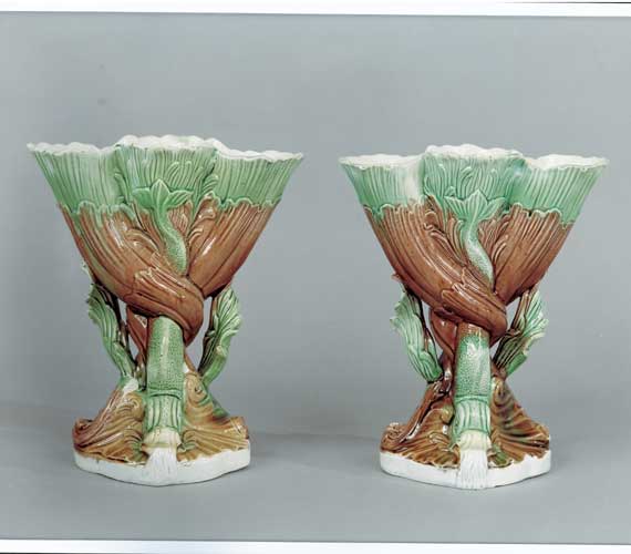 Pair of Dolphin Vases marked Ralph Wood.