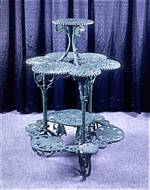 A Victorian 4 tiered Planter by Coalbrookdale, England mid 19th Century, in excellent condition, with superb castings, the green 20th Century paint is wearing down to a yellow beneath