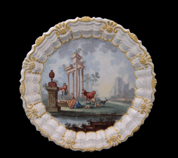 A Rare South Staffordshire Enamel Plate, England, circa 1765-1770, diameter 6", Ex-collection: Mannheim, New York.