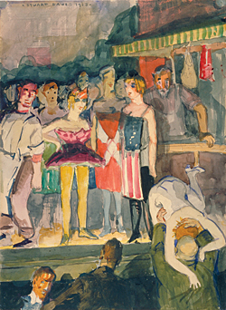 This was one of five works by eighteen-year-old Stuart Davis chosen for the groundbreaking Armory Show of 1913. According to Davis, it depicts a scene at a burlesque show in Hoboken, New Jersey, where he 'lummed' in bars and strip joints with friends. His teacher, Robert Henri, encouraged Davis to paint from his own experience, advice he followed throughout his career, even when he adopted a more abstract style.