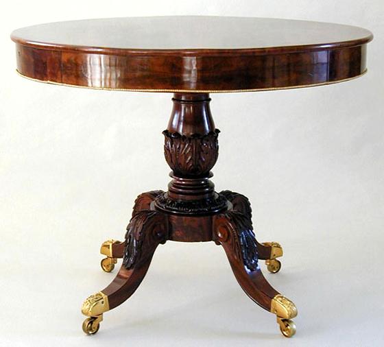 Literature: Page Talbott, The Magazine Antiques, Boston Empire furniture, Part II, May 1976, page 1008, fig. 7 and page 1009, Pl. III. Philip D. Zimmerman, The Magazine Antiques, The American sofa table, May 1999, page 747, Pl. IV. William Voss Elder III and Jayne E. Stokes, American Furniture 1680-1880 From the Collection of The Baltimore Museum of Art, P. 138, cat. No. 104.