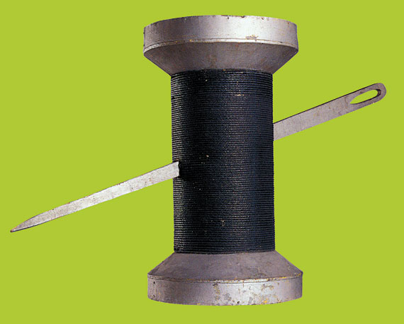 Circa 1920-1930. Wood, tin, fiber cording, black and silver paint.