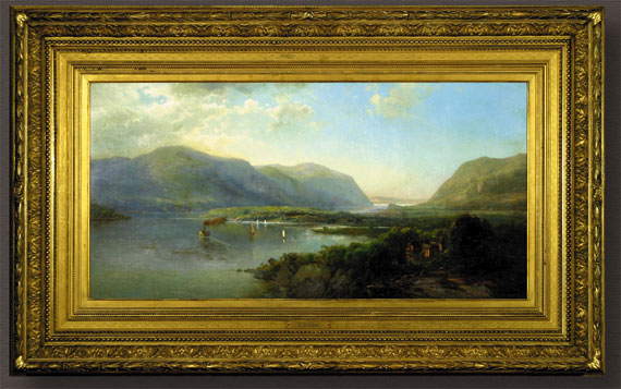 Hermann Fuechsel (German/American, 1833-1915), Highlands of the Hudson Near Westpoint. Oil on canvas, 22-1/8 x 44-1/8 inches. Signed lower right. Original period frame. Provenance: Private collection, NJ.