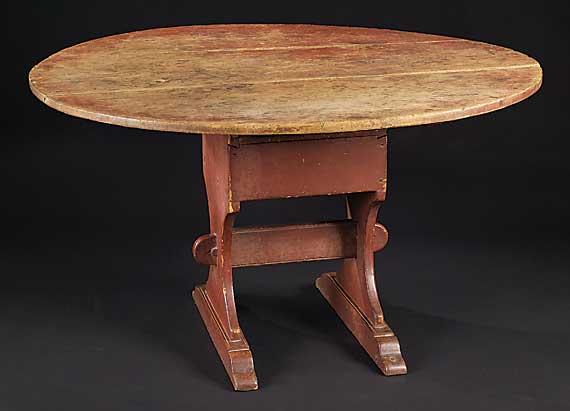 Shoe-Footed Hutch Table - pine - Hudson Valley, New York - 28-1/4 in. high / top: 49-3/4 in. x 43 in. c. 1760 - 19th century red over original red paint