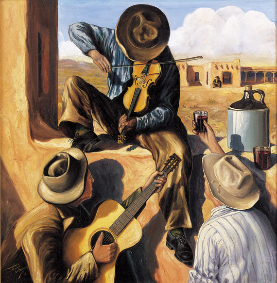 Esquipula Romero De Romero (1889-1975) Viva, Maestro! Oil on panel, 32 x 31 inches. Signed and dated '32 lower left