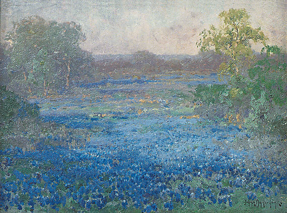 Julian Onderdonk (1882-1922), Bluebonnets North of San Antonio, Texas. Oil on panel, 9-1/2 x 12-1/2 inches. Signed lower right. Painted circa 1921.