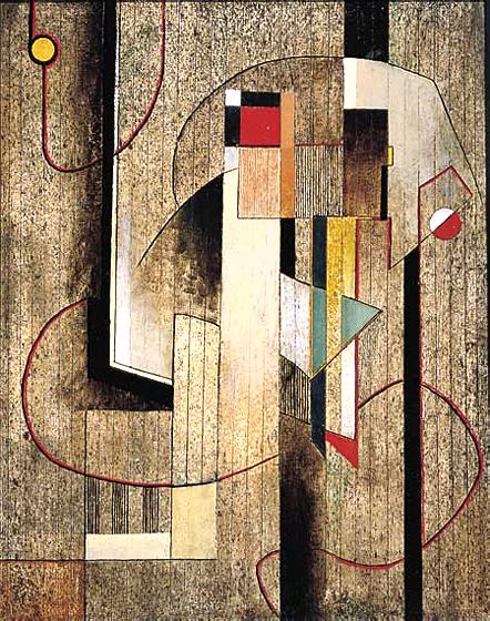 Robert Preusser (American, 1919-1992); Composition, 1935; Oil on board, 18 x 14 inches; Signed lower right