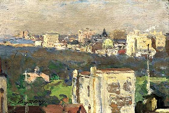 Irving Ramsey Wiles, N.A. (American, 1861-1948); Central Park from my Window; Signed lower left; Oil on wood panel, 6-1/4 x 9 inches