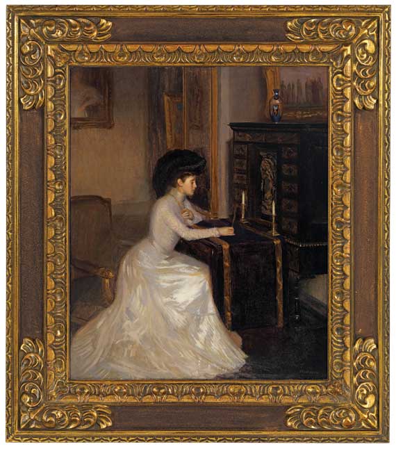 Arthur Merton Hazard (1872-1930) Reverie, c. 1905 Oil on canvas, 30 x 25 inches Signed at lower right: A. M. Hazard Yates style frame Exhibited: The Pennsylvania Academy of the Fine Arts, Philadelphia, Pennsylvania, 1906 Carnegie Institute, Pittsburgh, Pennsylvania, 1907