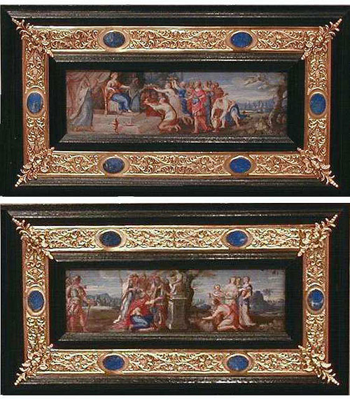 | Francesco Allegrini was a pupil of Cavaliere d'Arpino, and attracted at an early age by the work of Pietro da Cortona, although the full Baroque remained alien to him. His work has often been confused with that of his father, Flaminio Allegrini (? 1587-? 1663), also a painter. Many thought that he painted figures in paintings by Claude Lorrain. Francesco Allegrini was attracted to the work of Pietro da Cortona and worked in The Cathedral of Savona and in the Durazzi and Gavotti palaces in Genoa. It remains unclear whether these commissions were his or his fathers. Francesco worked primarily in Rome, where many of his canvases and frescoes are preserved in churches and palaces. Around 1650 he executed the St Catherine altarpiece in the church of SS Domenico e Sisto, Rome (in situ). Between 1652 and 1654 he was working on frescoes in the Speralli Chapel in the cathedral at Gubbio. In 1653, he took part in an important project to decorate the church of S. Marco, Rome, under the supervision of Pietro da Cortona. The two canvases he painted there, SS Abdon and Sennen Yoked to the Cart of Emperor Decius and the Consecration of the Basilica of St Mark (both in situ), reveal the influence of Andrea Sacchi's and Pier Francesco Mola's neo-Venetian art. At about the same time he painted the Scenes from the Old Testament in the Palazzo Pamphili in Piazza Navona, Rome. Allegrini also painted battle scenes, including frescoes in the Palazzo Rospigliosi (c. 1655) and the Palazzo Altemps. Between 1659 and 1660 he produced what was perhaps his most important work, a cycle of three frescoes,the Battle of Muret, the Martyrdom of St Peter of Verona and the Triumph of St Thomas Aquinas,in the Palazzo del Sant'Uffizio, Rome. His last Roman commission was the series of frescoes depicting scenes from the Life of St Alexander in the church of S.S Cosmo e Damiano. He settled in Gubbio, in 1661, where he painted numerous altarpieces in a style that somewhat echoes Cortona, for example the Virgin and Child with Saints in Santa Croce della Foce (1668; in situ). His last works include the frescoes painted between 1674 and 1678 in the church of the Madonna del Prato. *
