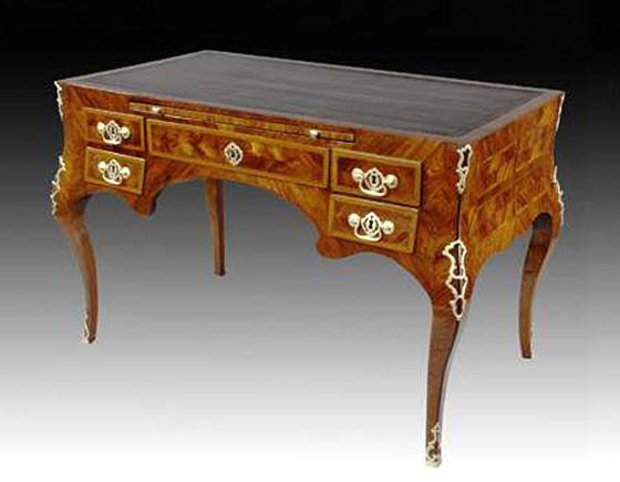 Kingwood, tulipwood, pine, gilded bronze and leather