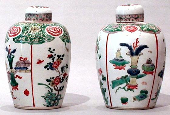 Fine Chinese porcelain was made during the reign of the Qing Emperor Kangxi (1662-1722). Polychrome wares of the type known in Europe as famille verte were produced in quantity both for the home market and for export. Famille verte is an elaborate type of Chinese porcelain, made mainly for export to Europe and decorated in enamel colors. On famille verte wares, a brilliant apple green and a strong iron red predominate among yellow, aubergine purple, and violet blue. This color scheme was adopted in the Kangxi period and replaced the earlier Ming five-color scheme in which blue was rendered in underglaze and not in enamel.