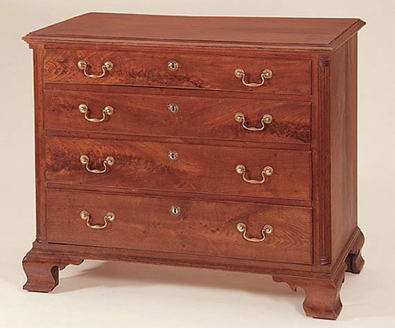 Chippendale Fig. Walnut 1/4-Col. Chest of Drawers |