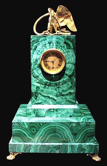 Ormolu Mounted Malachite Veneered Mantel Clock |