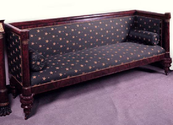 Important New York Mahogany & Mahogany Veneer Box Sofa, with Bronze Mounts, Sofa maintains orignal finish which has been French Polished.
