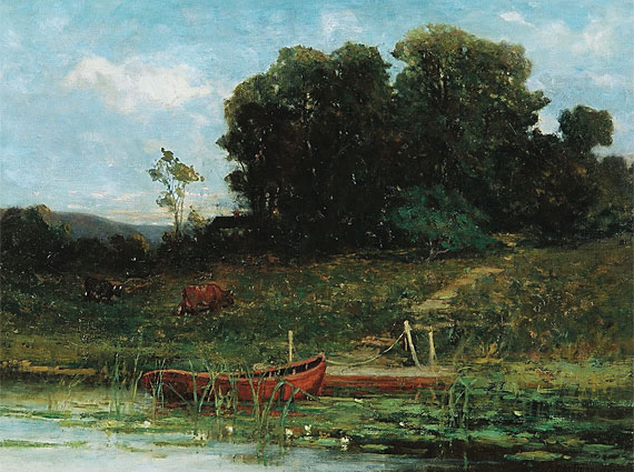 Edward M. Bannister (1828-1901), The Farm Landing, 1892; Oil on canvas, 30 x 40 inches; Signed lower right.