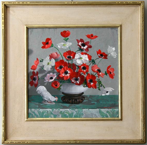 Painting by Carl Lawless (1894-1954), titled "The White Rooster".