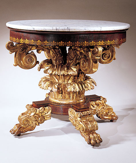 Important Carved Giltwood and Stenciled Rosewood Center Table Probably Philadelphia 1825-1835 H: 29H", Diameter: 36"