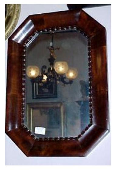 An interesting shape mahogany veneer ogee mirror, french polished 15-1/2 inches wide x 22 inches long.