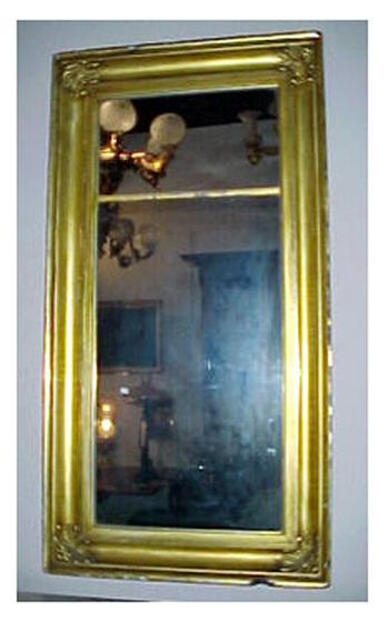 A Gilt Ogee Mirror with Acanthus leaves in corner, there is some damage to the frame and wear to the gilt at the edges. Measurements: 29" wide, 55" long