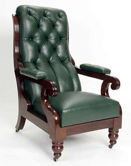Classical Mahogany Reclining Chair bearing the patent label of "CLARK PATENT" comfortable chairs from this era are difficult to come by. Circa 1830.