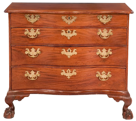 A fine Chippendale mahogany serpentine front chest