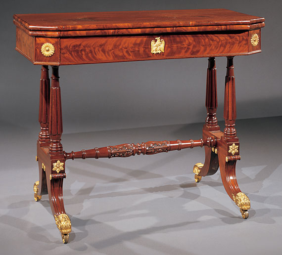 One of a Pair of Neo-Classical Card Tables with Trestle Bases and Eagle Mounts