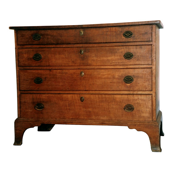 Home | Dealers | Kemble's Antiques | Tiger Maple Hepplewhite Four-Drawer Chest