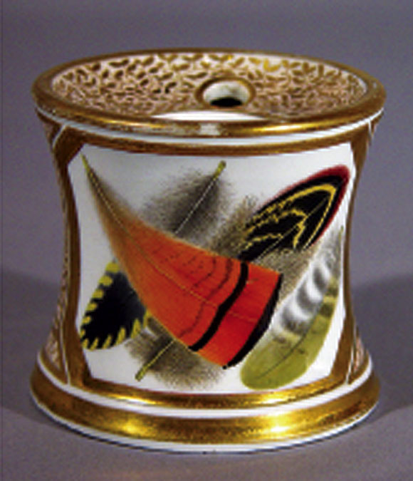 A Flight and Barr Worcester Porcelain Feather-Decorated Inkwell