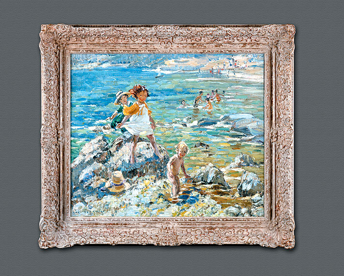 Among the Rocks, Beach at Cornwall. By Dorothea Sharp (1874-1955). 20" x 24", Oil on canvas.