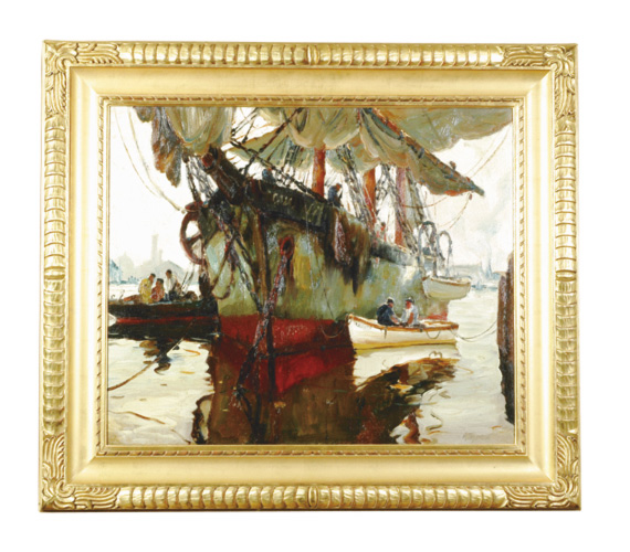 The Salt Bark. Oil on canvas, 30 x 36 inches. Signed lower right.