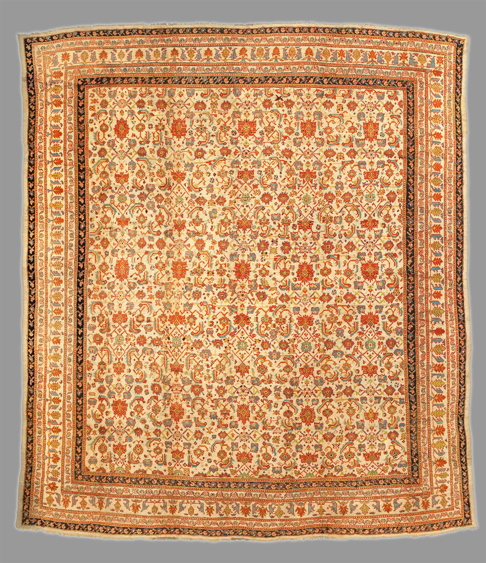 A simple 'herati' design alternating with rosettes highlight this lovely decorative carpet.