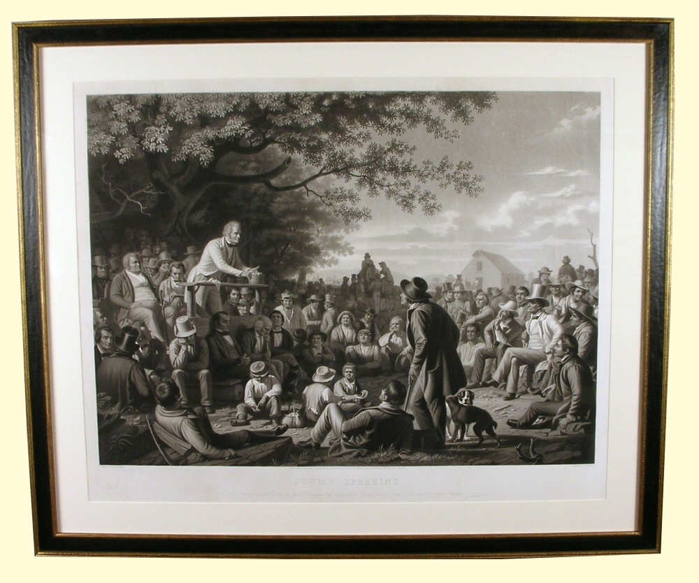 "Stump Speaking", engraved by Gautier. This is an artist proof printed on "Chine Applique". The lower edge has been slightly trimmed. Recently cleaned and framed using archival materials. This is sold TOGETHER with "The County Election". $11,000/2.