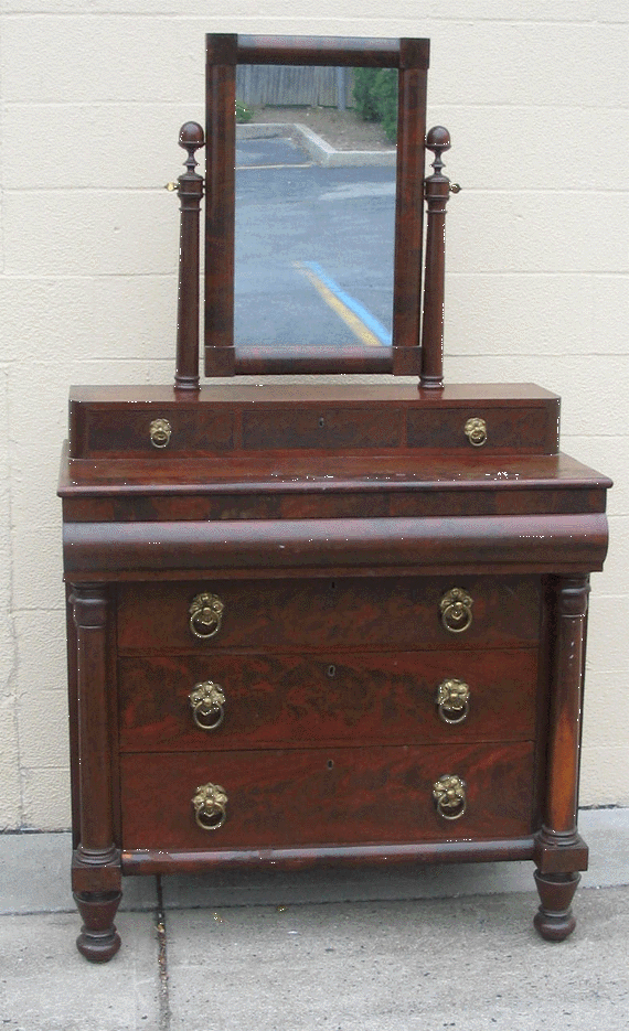 An Important & rare 19th Century classical mahogany dresser bearing the early & rare label of Meeks and Sons Manufacturers 15 & 45 Broad Street, New York. The piece is in absolutely original condition maintaining its original finish with very minor veneer damage. Mirror and hardware are all original. This paper label predates the later J&JW Meeks label, which was their most productive era.