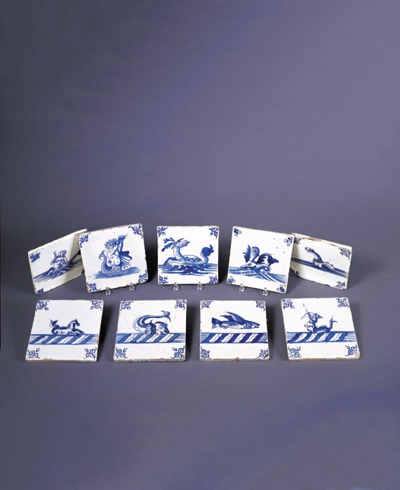 Home | Dealers | Autumn Pond-Norma Chick | 17th century Dutch 'Sea Creature' Tiles