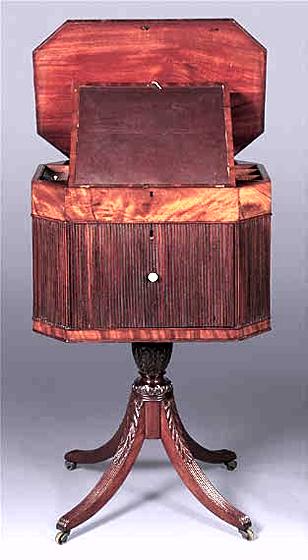 Home | Dealers | Saje Americana Antiques | Mahogany Lift Top Sewing Stand
