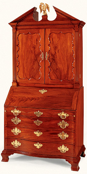 Fine Chippendale Figured Mahogany Secretarial Desk |