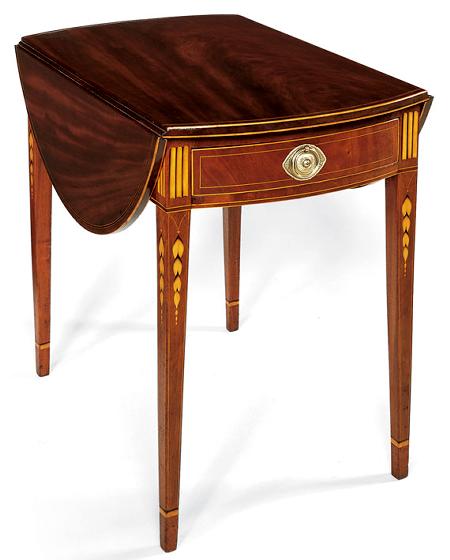 Exceptional Hepplewhite Inlaid Mahogany Oval-Top Pembroke Table