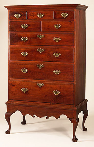 Home | Dealers | Prickett, C.L. | Queen Anne Figured Walnut Chest-on-Frame