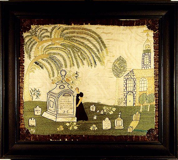Silk embroidered memorial with original ribbon surround inscribed, "In memory of John Henry Greenawalt who departed this life Jan, 11 1815. Aged 78 years."