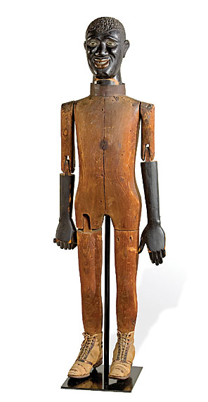 American, 4th qt. 19th c. Carved and painted pine with cloth shoes and sheet iron colar. Ht 51". Exceptional original condition.