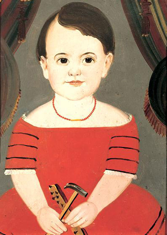 Home | Dealers | Pollack, Frank & Barbara American Antiques & Art | Portrait of a Young Child Holding a Hammer & Tacks