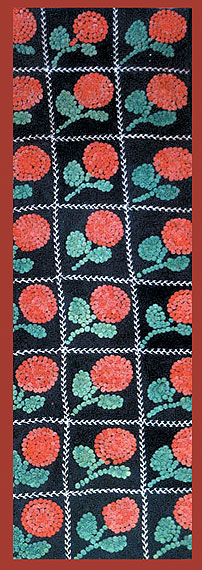 Floral Applique Table Mat. Three dimensional blooms made of thousands of dots hole-punched from felt and wool. 2' 10" x 4' 7".