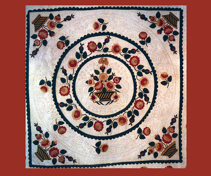 "Trapunto" Baskets of Flowers Applique Quilts. Circa 1840s, 84" x 86".