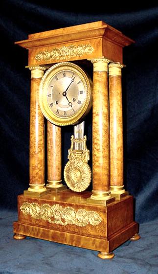 Home | Dealers | Douglas, Gavin Fine Antiques | A Birds-eye maple Portico clock