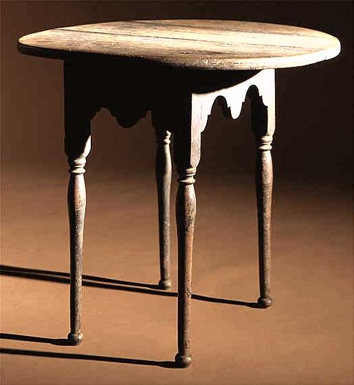 Queen Anne maple tea table with black paint surface. "As found" untouched condition. Connecticut, 1745-1760.