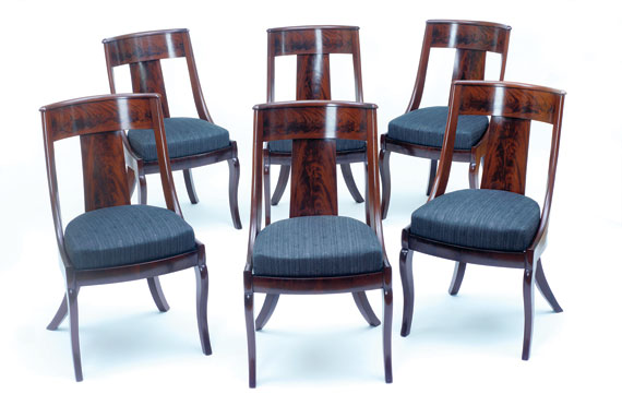 Home | Dealers | Aileen Minor American Antiques | Rare Set of Six Classical Mahogany Gondola Chairs