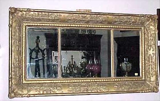 A 19th C Classical or Empire Gold Leaf Mirror with designs of eagle wings, ancanthus leaves & shells & snakes on the frame, 49 inches long and 26-1/2 inches tall