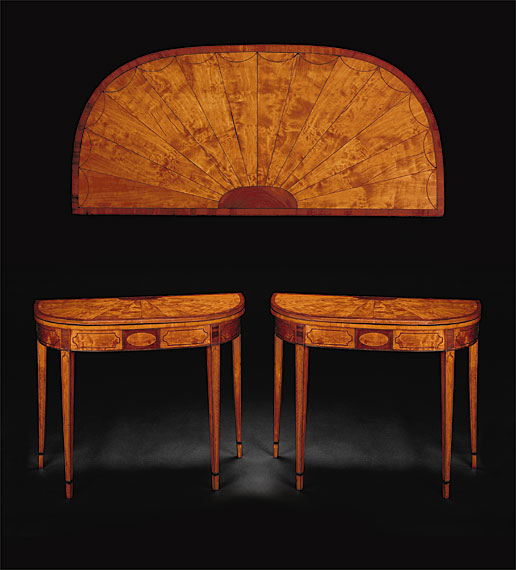 A Pair of Satinwood Card Tables with Radiating Fan Tops. Charleston, South Carolina. Circa 1795-1810.