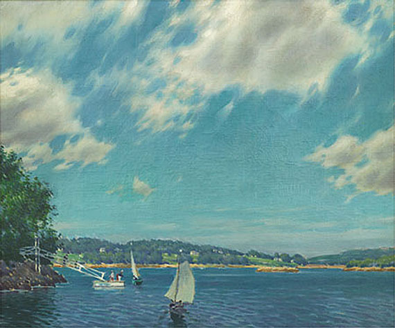 | Edward Dufner (1871-1957), Sailing, Midsummer. Oil on canvas, 25 x 30 inches. Signed lower right.